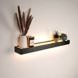 Fremvis flasker, glas, fotos, planter eller andre dekorationer med den oplyste væghylde.