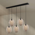 The s.luce Echos 5-light dining table lamp with 160 cm canopy and generous Ø 25 cm glass body is the perfect choice for large dining tables, kitchen islands or open-plan living rooms with plenty of space. The design is characterized by its clear design language and the exciting combination of size, glass structure and lighting effect.