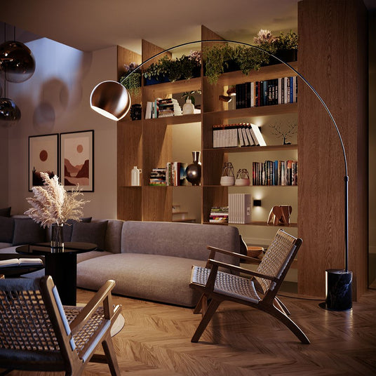 En s.luce La lámpara de arco de bola es el nuevo punto culminante de diseño en su salón y, con su forma elegante y aspecto inusual, proporciona una experiencia de vida muy especial.