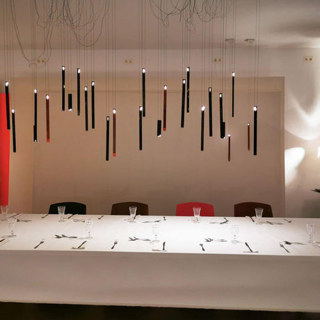 - Zylindrische Leuchten bringen Klarheit und Eleganz ins Spiel – perfekt für strukturierte Räume oder moderne Esstische.