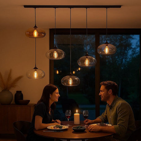 Che si tratti di vetro trasparente, di un elegante grigio fumo o di un caldo ambra, ogni colore crea accenti unici e l'atmosfera perfetta per l'illuminazione. Per la vostra casa.