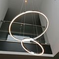 De kap van de ringlampen is zo ontworpen dat je tot drie hanglampen kunt aansluiten via één stopcontact. Kies je individuele ringcombinatie uit vier kleuren en vier maten en bestel de ombouw tegelijkertijd als 2- of 3-rings combinatie centrisch of excentrisch. We leveren de hanglamp direct bij je thuis, klaar om aangesloten te worden volgens jouw specificaties.