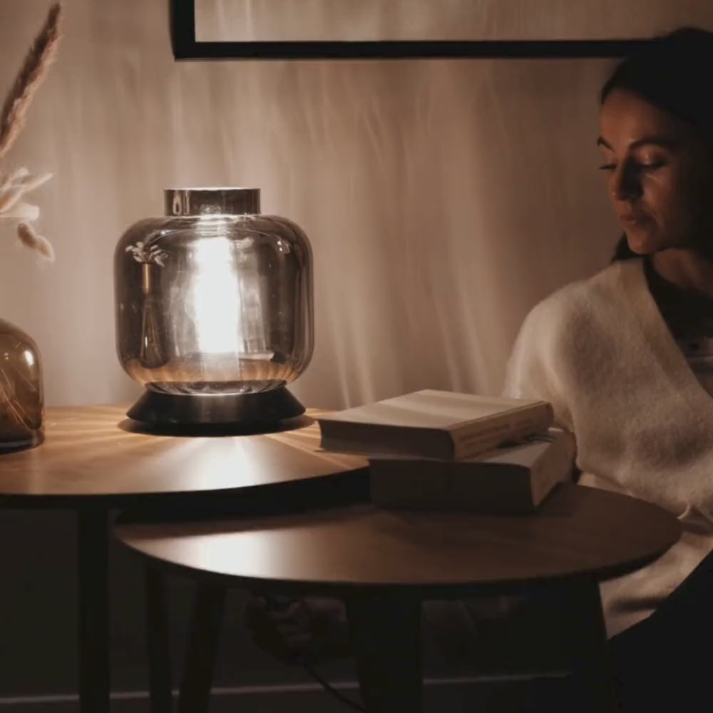 Mit der s.luce Velo Design Glas-Tischleuchte setzt Du ein stilvolles Highlight in Deinem Raum. Die Leuchte begeistert mit drei stilvollen Glasfarben – Rauch, Cognac und Klar – sowie unterschiedlichen Größen, die flexibel miteinander kombiniert werden können.