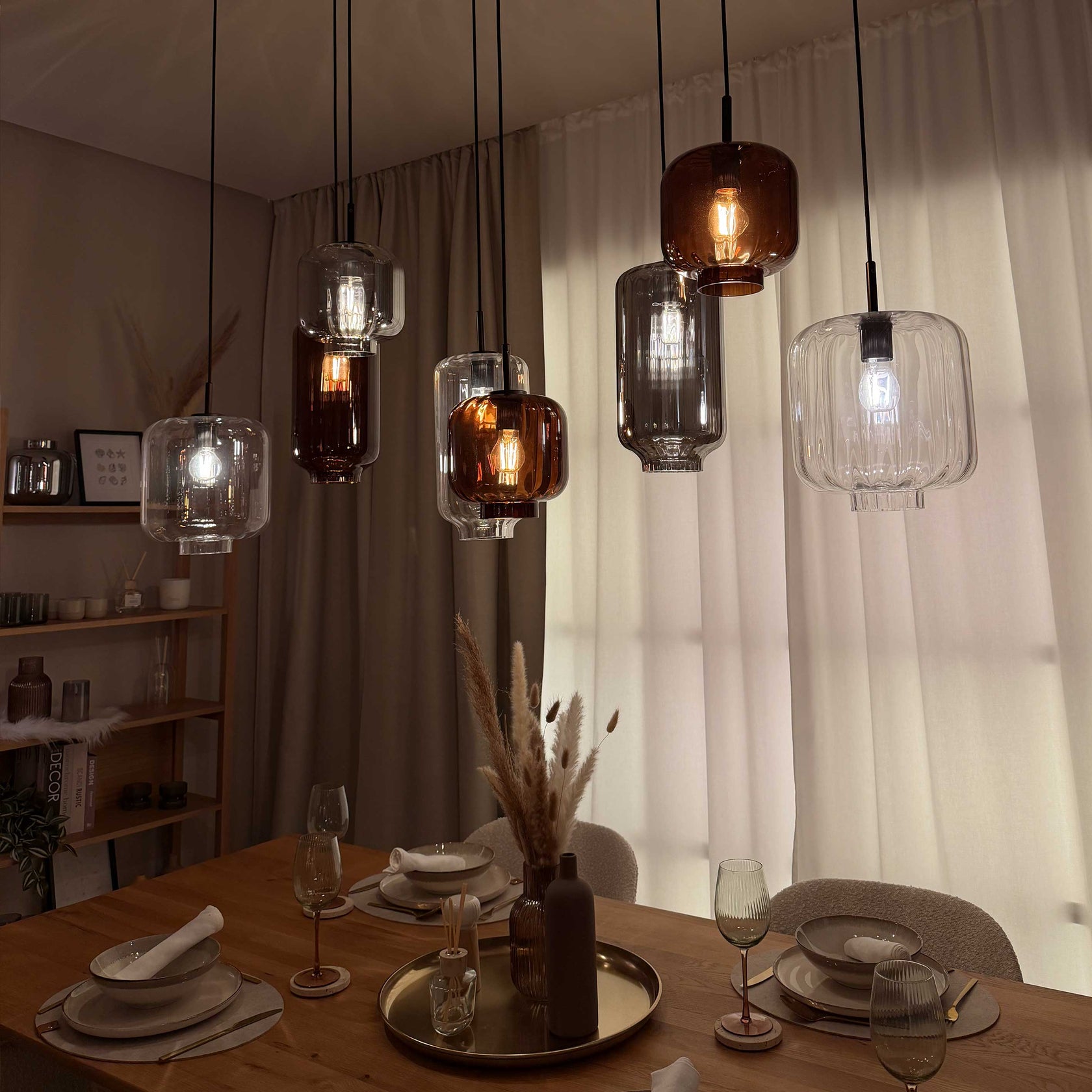 - Vielfältige Auswahl: In drei edlen Farben (Cognac, Klar, Rauch) und drei Größen (Ø 25 cm, Ø 20 cm & Ø 18 cm) erhältlich, lässt sich die Leuchte perfekt auf Dein Raumkonzept abstimmen.