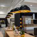 Pendellampan Blister kommer bäst till sin rätt i stora och höga rum. Låt Blister få utrymme att utveckla sin skönhet. På utsidan är armaturen målad i trendig matt svart, medan du på insidan kan välja mellan ett varmt guld eller ett strålande silver. Armaturen kan anpassas på in- och utsidan på begäran. Kabelförlängningar finns tillgängliga på begäran - kontakta oss.