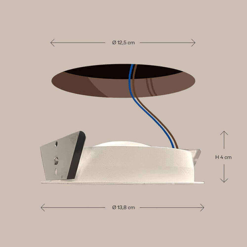 För att installera den infällda spotlighten Santa Neo krävs ett installationsdjup på ca 4 cm. Se till att det finns tillräckligt med utrymme i taket för installationen.